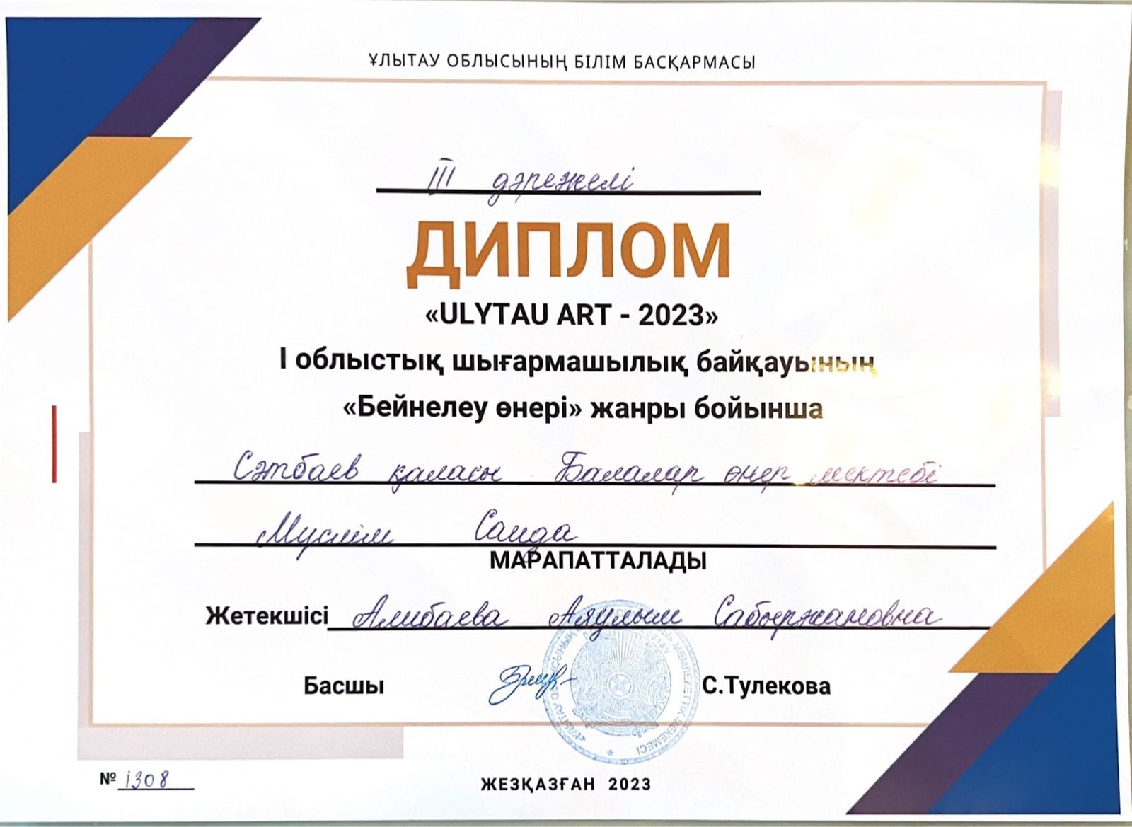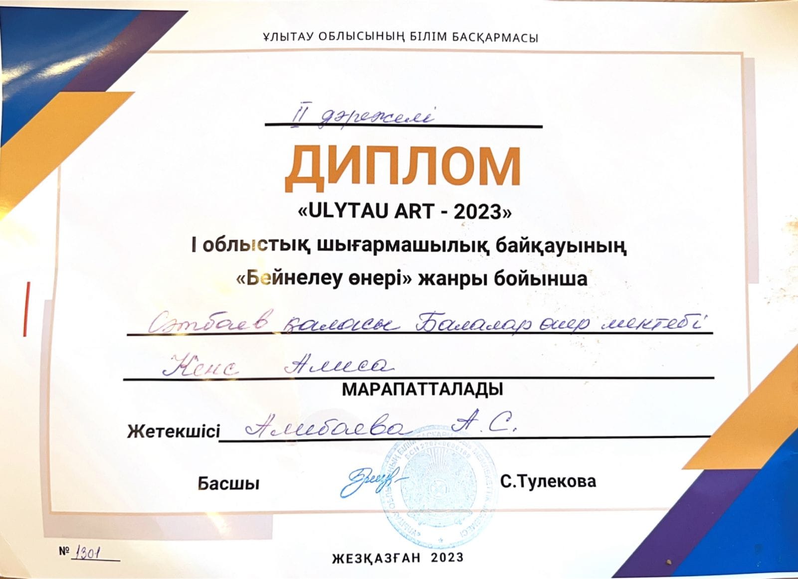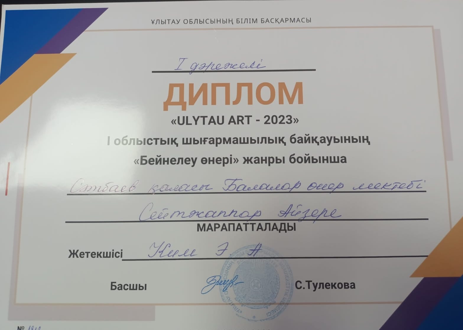 Дипломант 1 степени- (ИЗО)Ақжанов