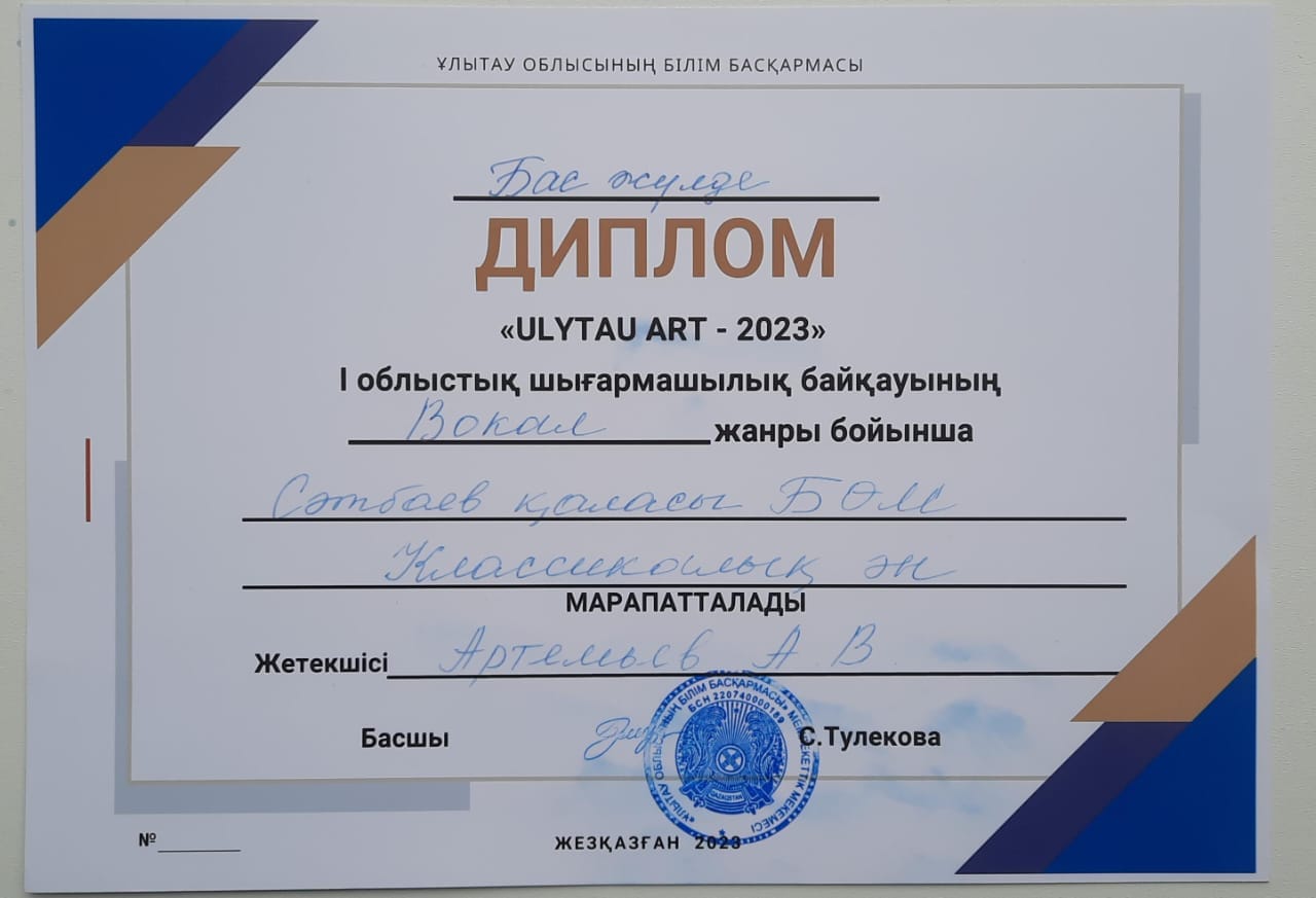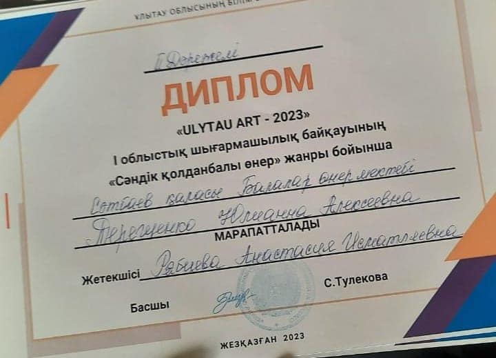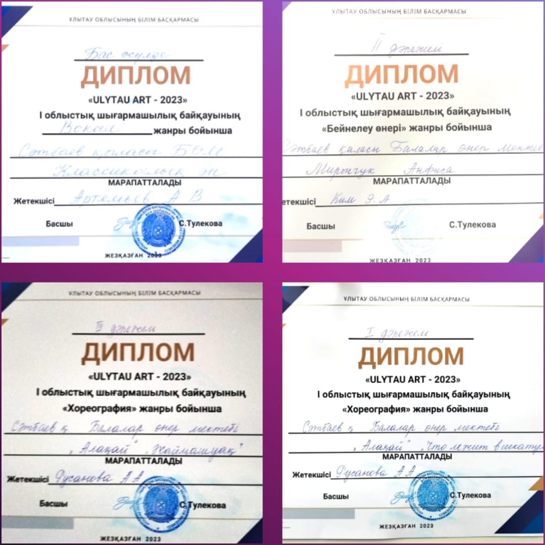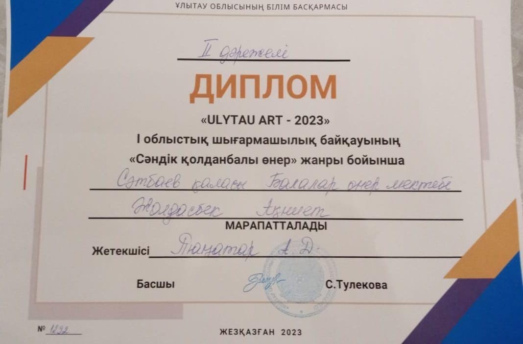 Поздравляем победителей, всех участников и руководителей, готовивших ребят , на I Областной конкурс детского твочества "ULYTAU ART -2023" !!! Желаем дальнейших творческих побед и высоких достижений!