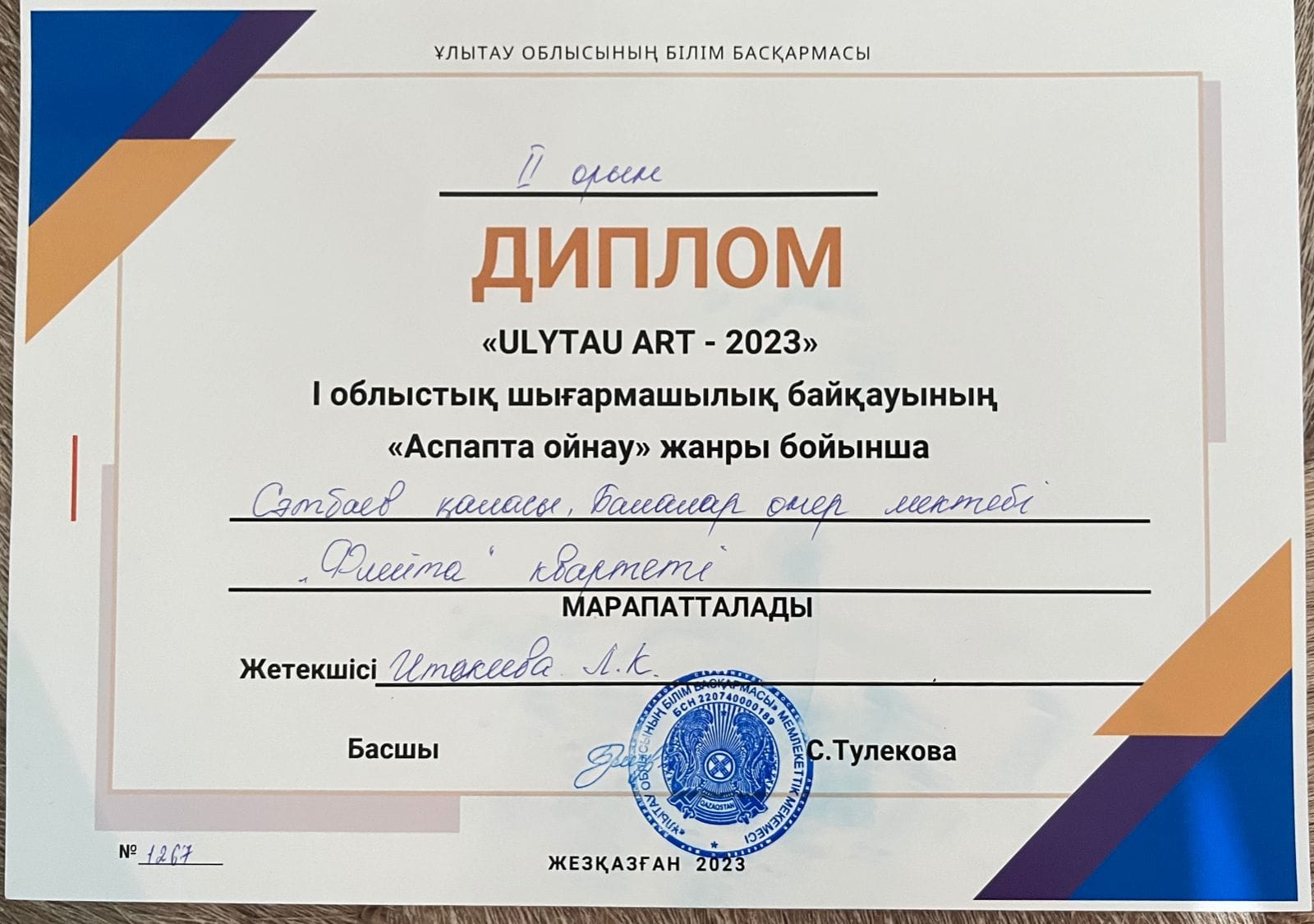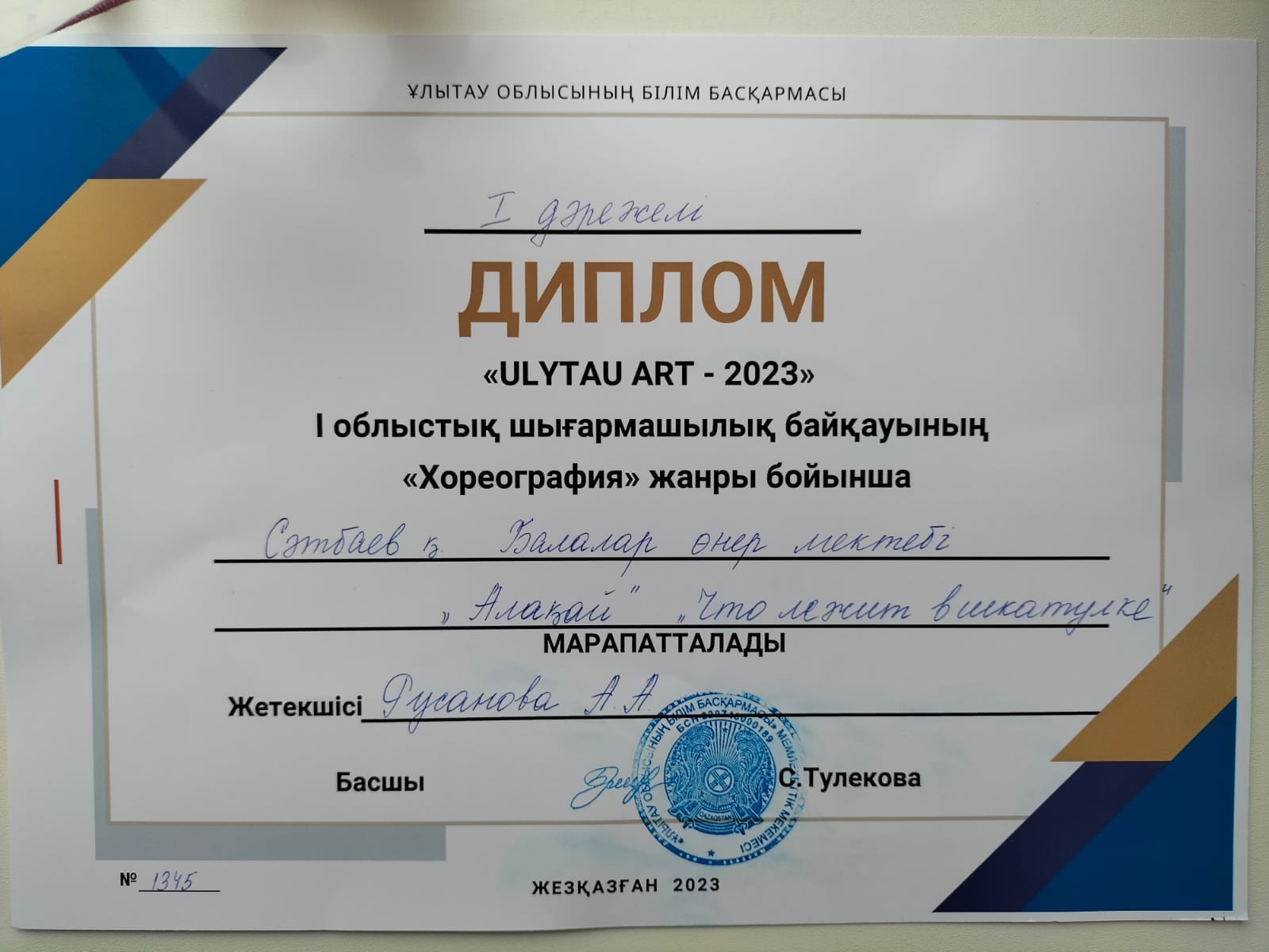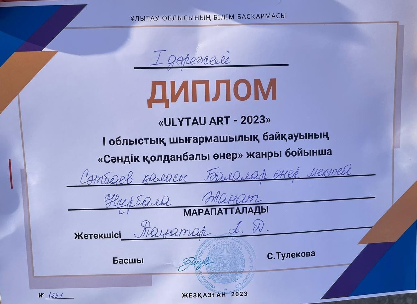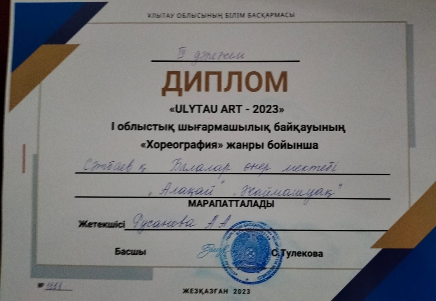 Поздравляем победителей, всех участников и руководителей, готовивших ребят , на I Областной конкурс детского твочества "ULYTAU ART -2023" !!! Желаем дальнейших творческих побед и высоких достижений!