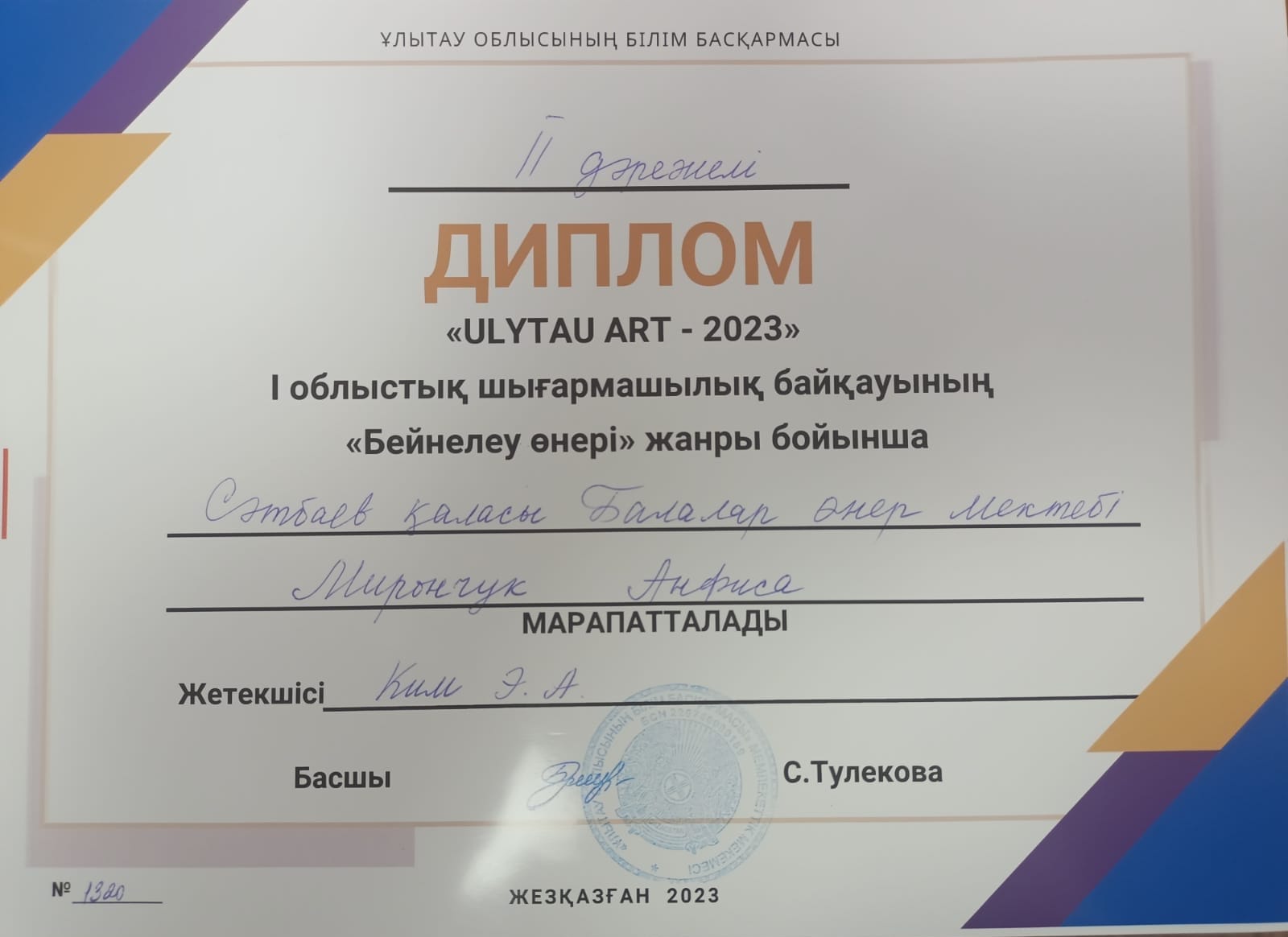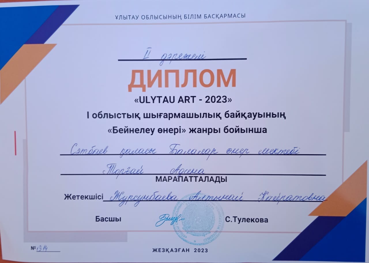 Дипломант 2 степени Торғай Адима(ИЗО)(рук. Журсунбаева А.К)