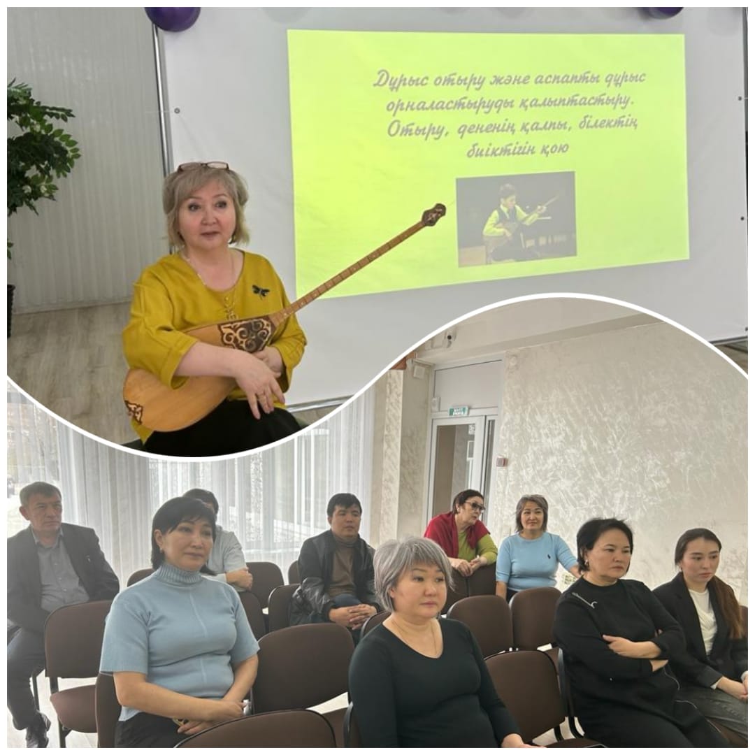 “ Балалар өнер мектебі”- Юнеско клубы Құрманғазы атамыздың 205 жылдығына орай халық аспаптар бөлімі айтыс өткізді.