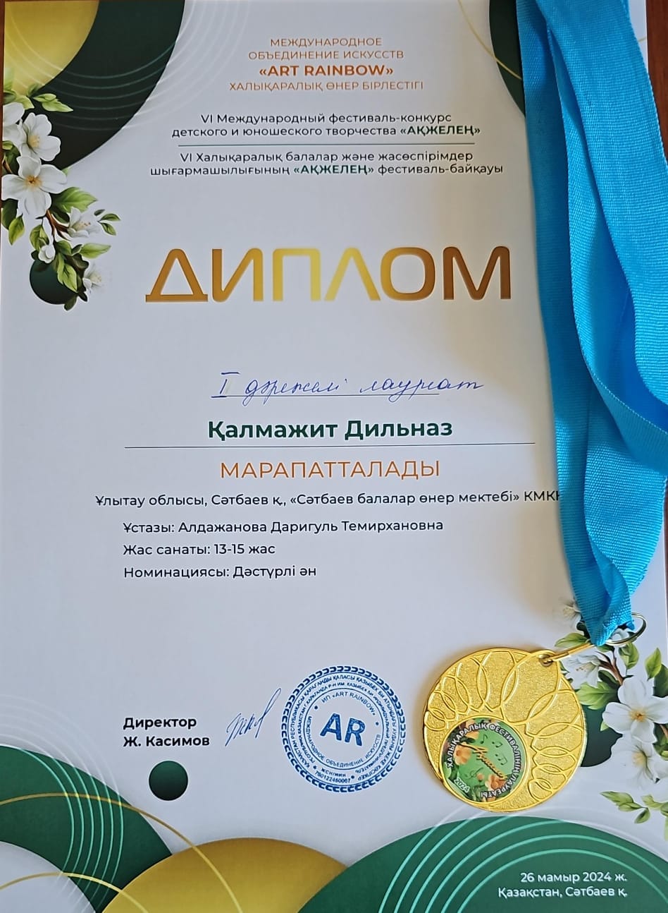 Сәтбаев қаласы "Балалар өнер мекебінің" халық аспаптар бөлімінің оқушылары VI Халықаралық балалар және жасөспірімдер шығармашылығының "Ақжелең" фестиваль- байқауына қатысып, аспапта ойнау номинациясы бойынша Кәрім Нұрай бас жүлде,ұстазы Апаканова Ш.И. қобыз номинациясы бойынша Үншібаева Іңкәр 1 орын,ұстазы Естиярова С Т. дәстүрлі ән номинациясы бойынша Қалмажит Дильназ 1 орын, Серікхан Нұрислам 1 орын, ұстазы Алдажанова Д.Т. және "Наркескен" домбырашылар ансамблі бас жүлдеге ие болды.