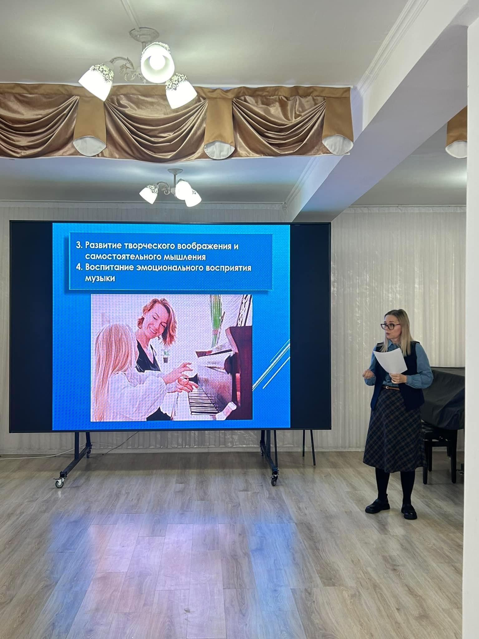 В Детской школе искусств г. Сатбаева к 100-летию Н. Тилендиева преподавателями Сейдахметовым О.С., Апакановой Ш.И. и Оразалиным М.Б. был проведен классный час.