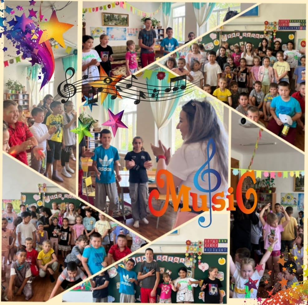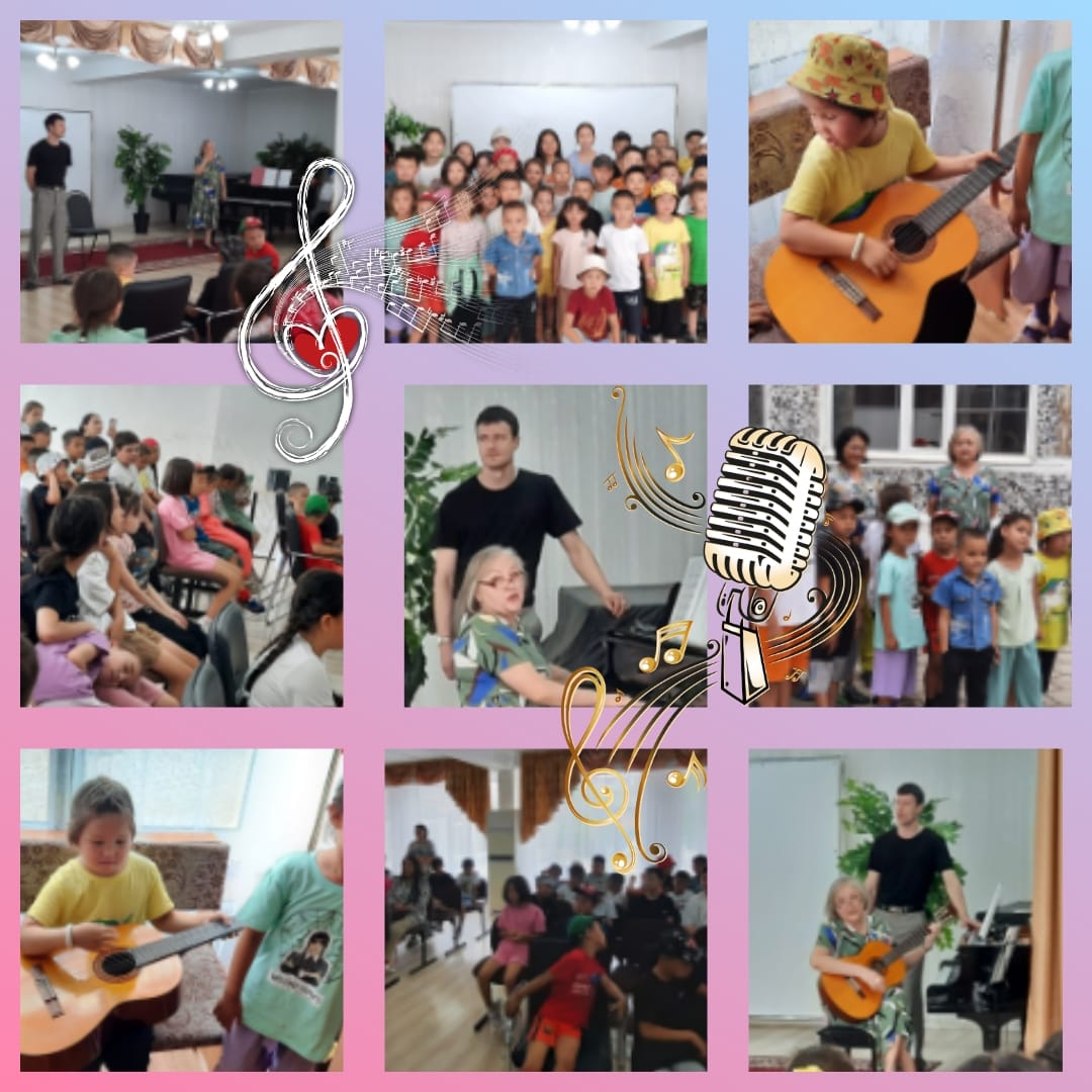 На летней плошадке общеобразовательной школы имени Каныша Сатпаева преподаватель фортепианного отделения Құтыбай Ботагөз Әмірбекқызы и музыкально- теоретического отделения Абдрахман Жанар Боранбаевна , проводили музыкальное занятие