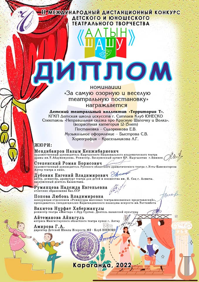 II МЕЖДУНАРОДНЫй ДИСТАНЦИОННЫЙ КОНКУРС ДЕТСКОГО И ЮНОШЕСКОГО ТЕАТРАЛЬНОГО ТВОРЧЕСТВА «Алтын Шашу»