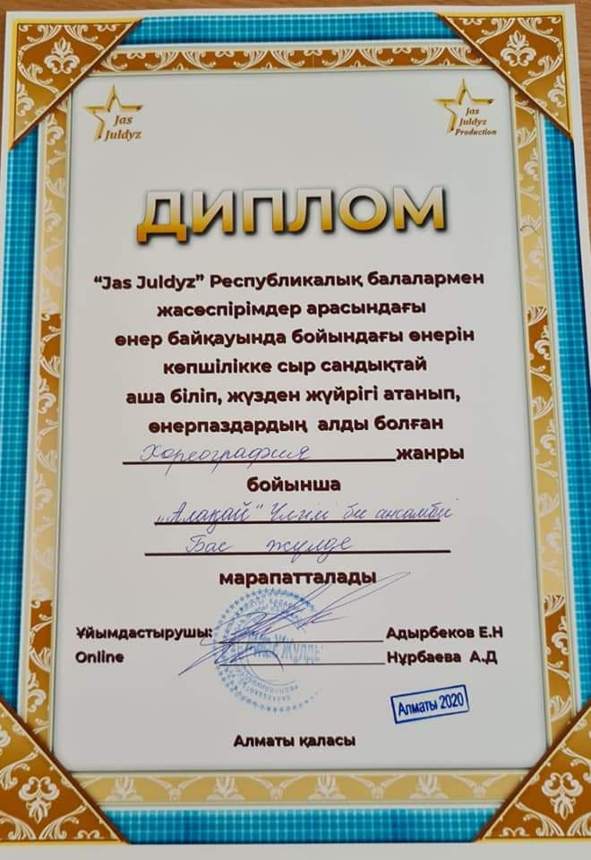 Поздравляем Старшую группу образцового хореографического ансамбля " Алақай" получившую ГРАН - ПРИ в Республиканском конкурсе " Жас жұлдыз"!