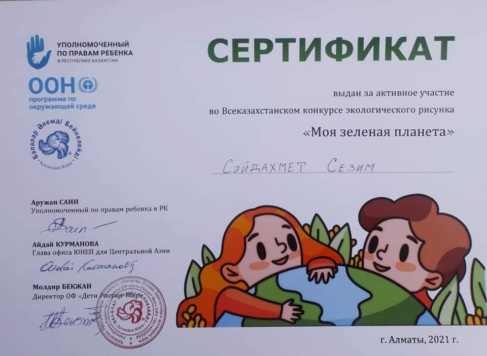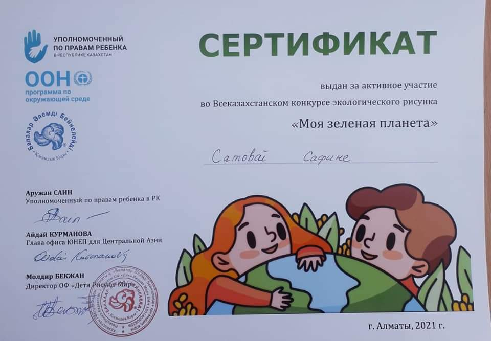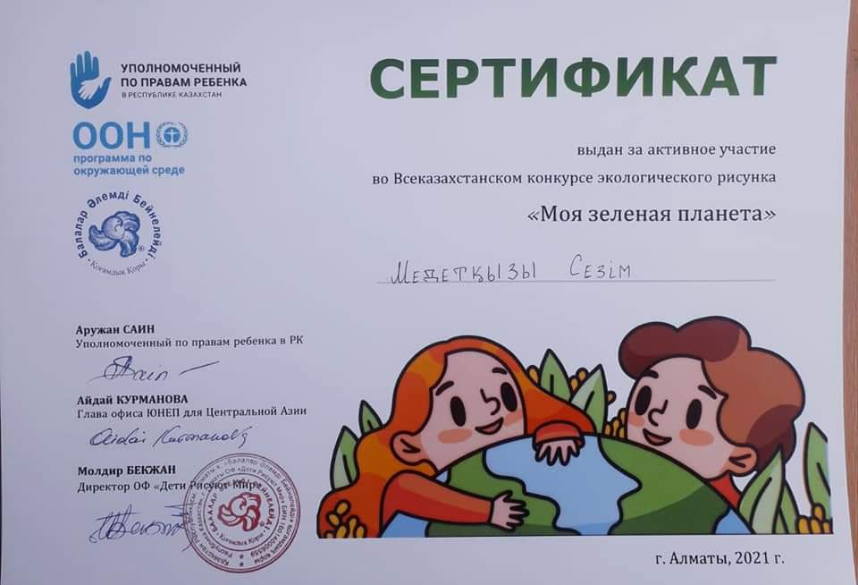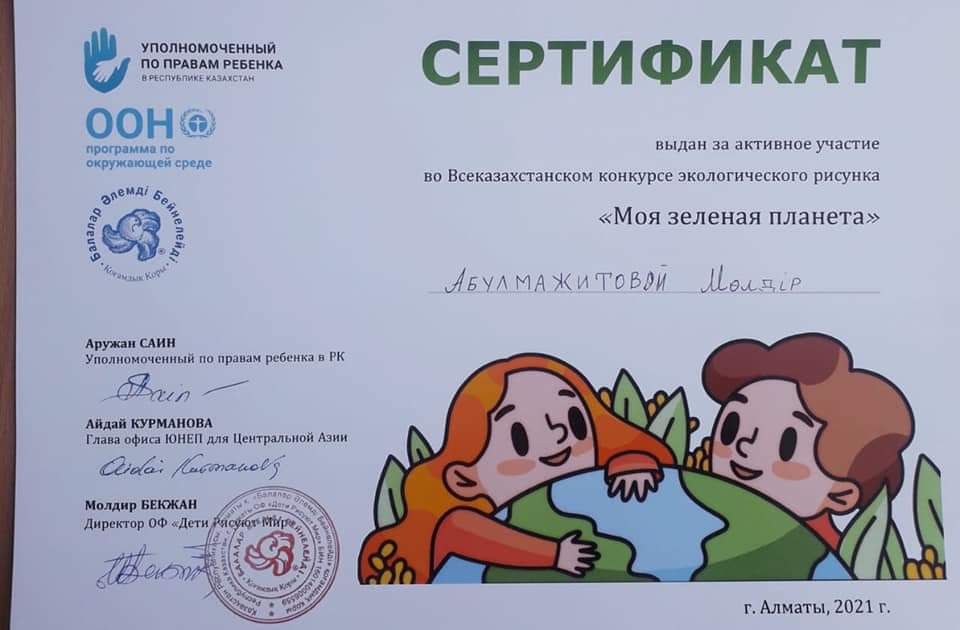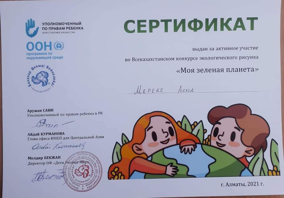 Информационного бюро ООН в РК, совместно с Общественным Фондом "Дети Рисуют Мир"в рамках празднования Всемирного дня окружающей среды Программы ООН по окружающей среде,
