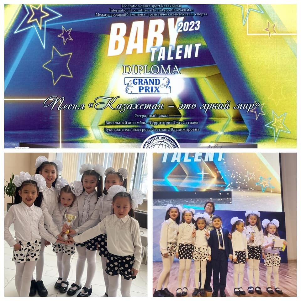 19 февраля в г.Караганда прошел Многожанровый Международный Чемпионат артистических искусств и танцевального спорта «Baby Talent - 2023!», в котором приняли участие учащиеся театрального отделения ДШИ г.Сатпаев. Наши достижения: Номинация театральное творчество Детский театральный коллектив «Территория Т» - ГРАН ПРИ руководитель Красельникова А.Г. Детский театральный коллектив «Территория Т» - 1 место руководитель Быстрова С.В. Национальный театр моды «Территория Т» - ГРАН ПРИ руководитель Рябцева А.И., хореограф Ивлева Л.Н. Номинация эстрадный вокал Вокальная группа «Территория Т» - ГРАН ПРИ руководитель Быстрова С.В. Көпей Адель - ГРАН ПРИ руководитель Быстрова С.В. Кәрім Ұлжан - ГРАН ПРИ руководитель Быстрова С.В. Бейбітқызы Нұрай - 1 место руководитель Быстрова С.В.